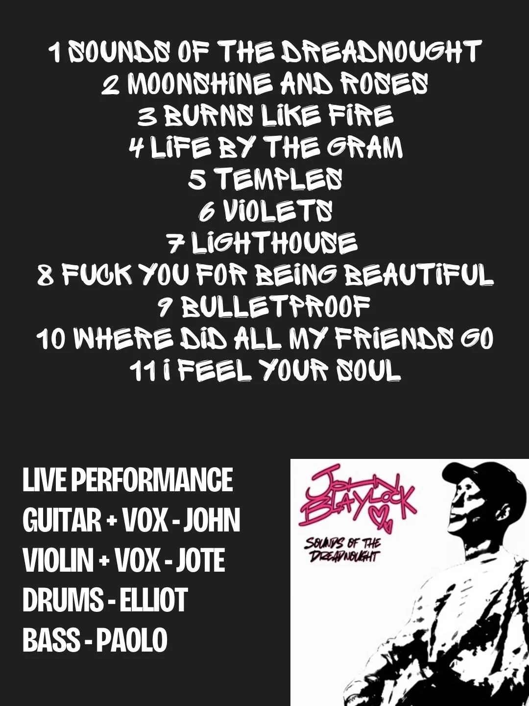 “John Blaylock is an artist whose raw, soul-baring vocals and emotionally rich songwriting create a powerful connection with anyone who listens. If you are drawn to music that bridges the gap between classic and contemporary pop, infused with deeply personal expression, John Blaylock’s work will resonate strongly with you. His upcoming debut album promises a collection of beautifully crafted, heartfelt songs featuring Lennon-like raw, gritty lyrics and captivating loops that take you to the edge”